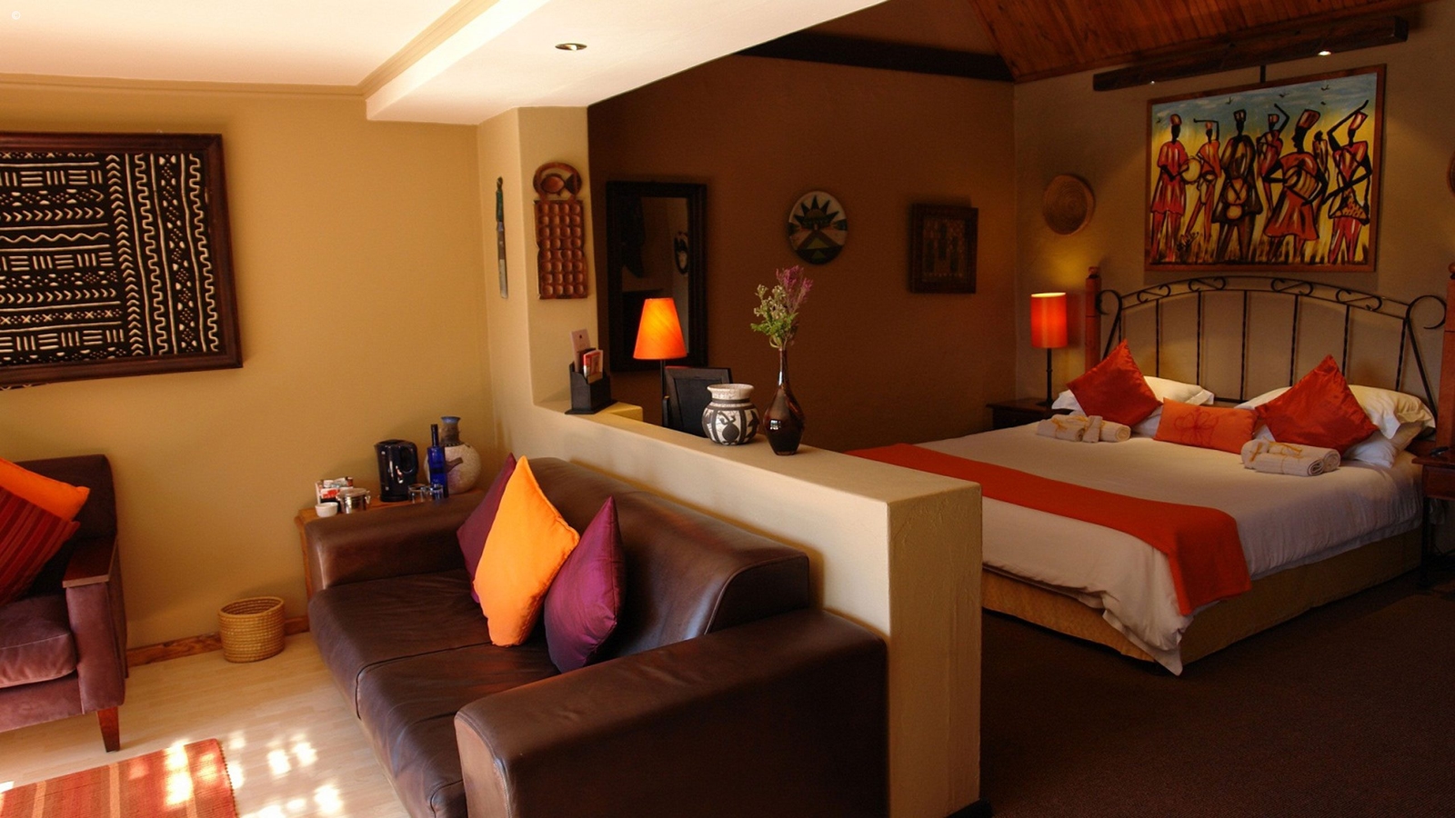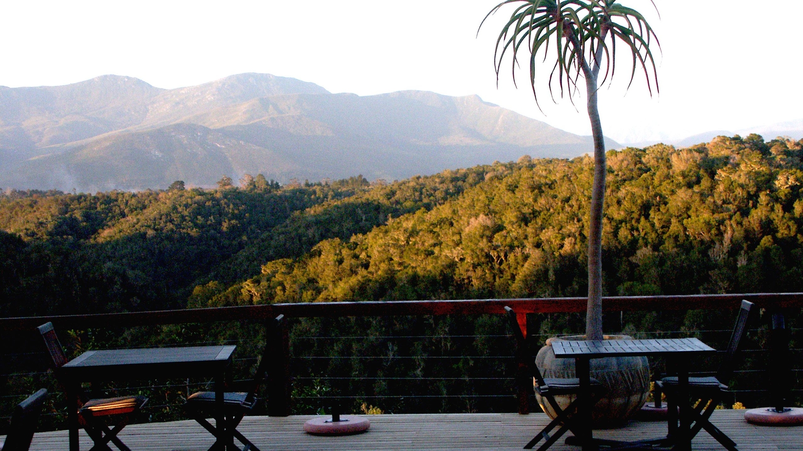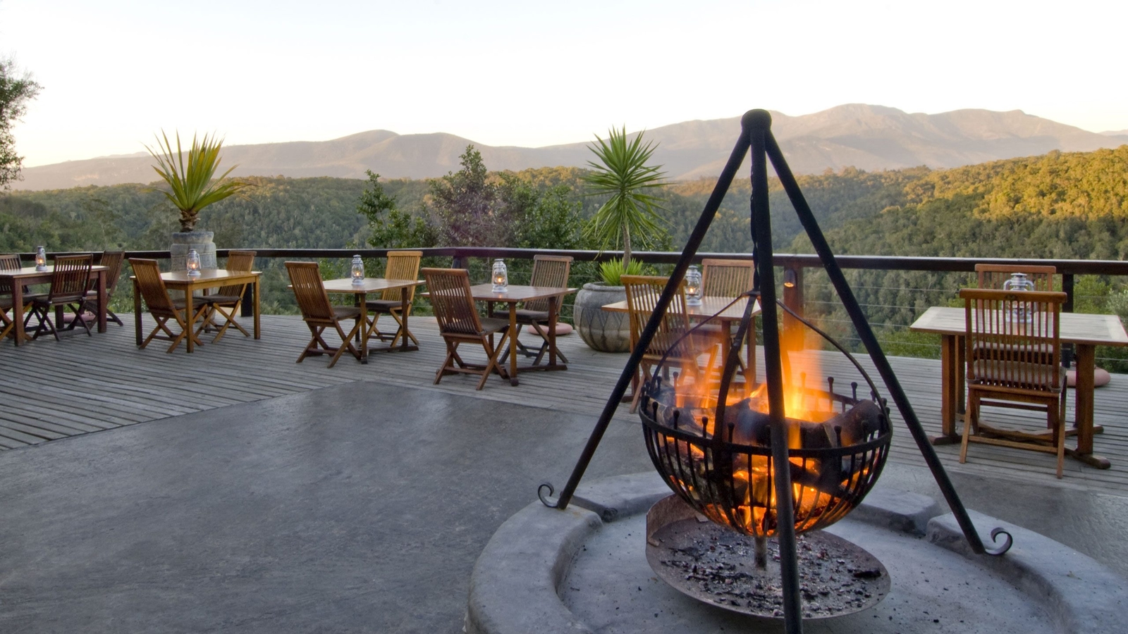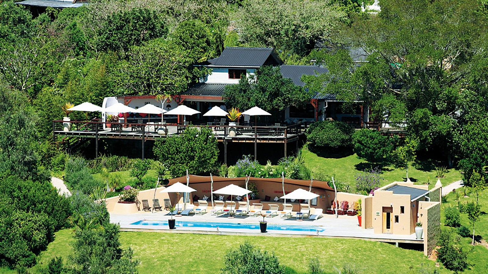 The 16 suites are situated in the garden, facing the main house. All come with king-sized beds (although twins are available) and are appointed in rustic earthy tones with simple, yet contemporary, furniture. Local hand-crafted art features throughout. There is also a three-bedroomed, two-storey villa available, which features a private infinity pool and extraordinary views over the valley and Tsitsikamma Mountains.