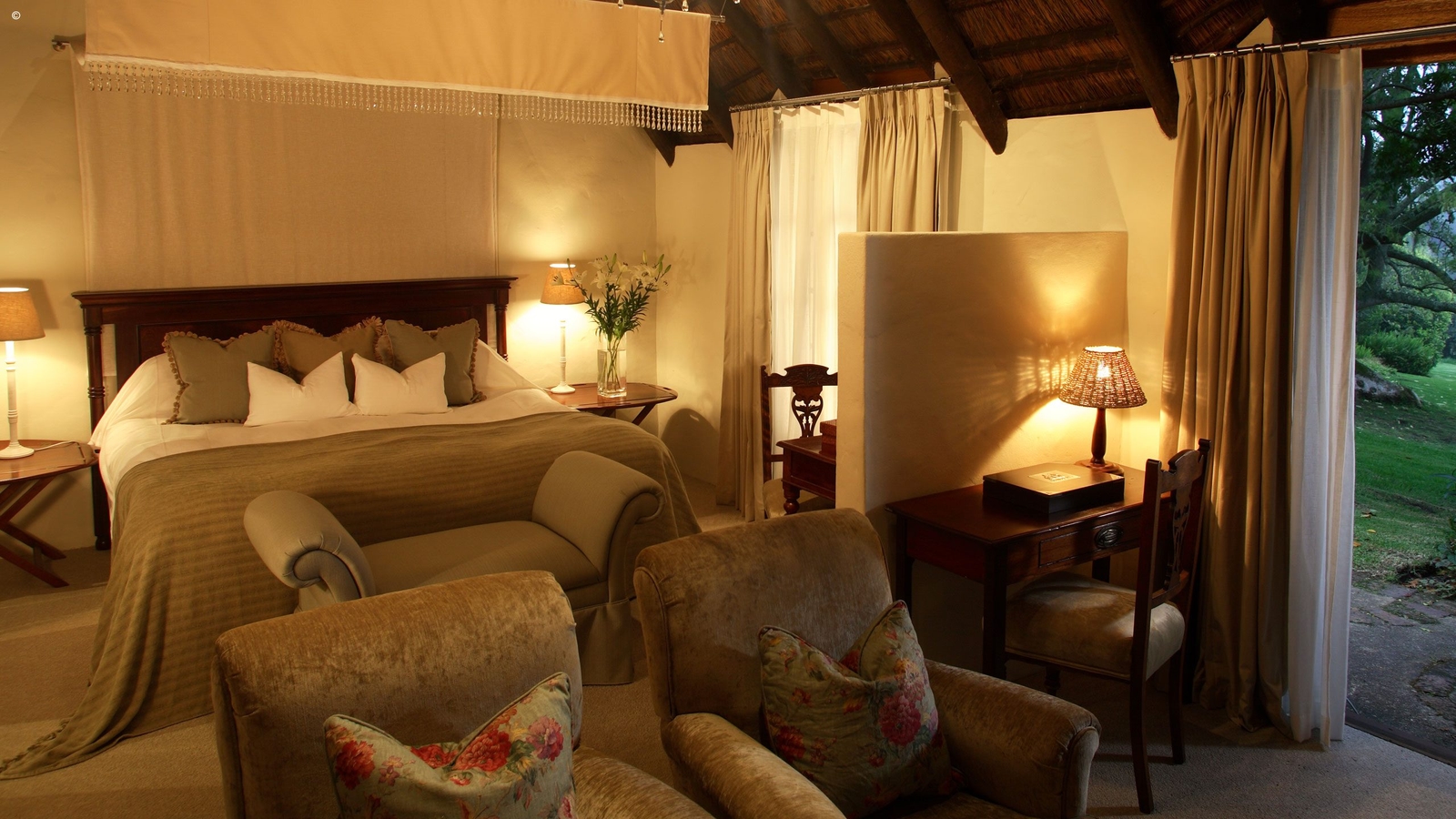 The 19 individually thatched cottage suites are the perfect antidote for a true home away from home. The award-winning lodge has various suite options. Enjoy the ultimate charm in a deluxe suite with your own private pool or a cosy suite tucked away within the exquisite, fragrant gardens. For some intimate family time, there are larger suites catering towards children of all ages. Each suite is tastefully furnished with local artwork. Hosting rich and ample dining options, you can indulge in the diversity of South African cuisine among peaceful settings – complimented by the diverse wine cellar.