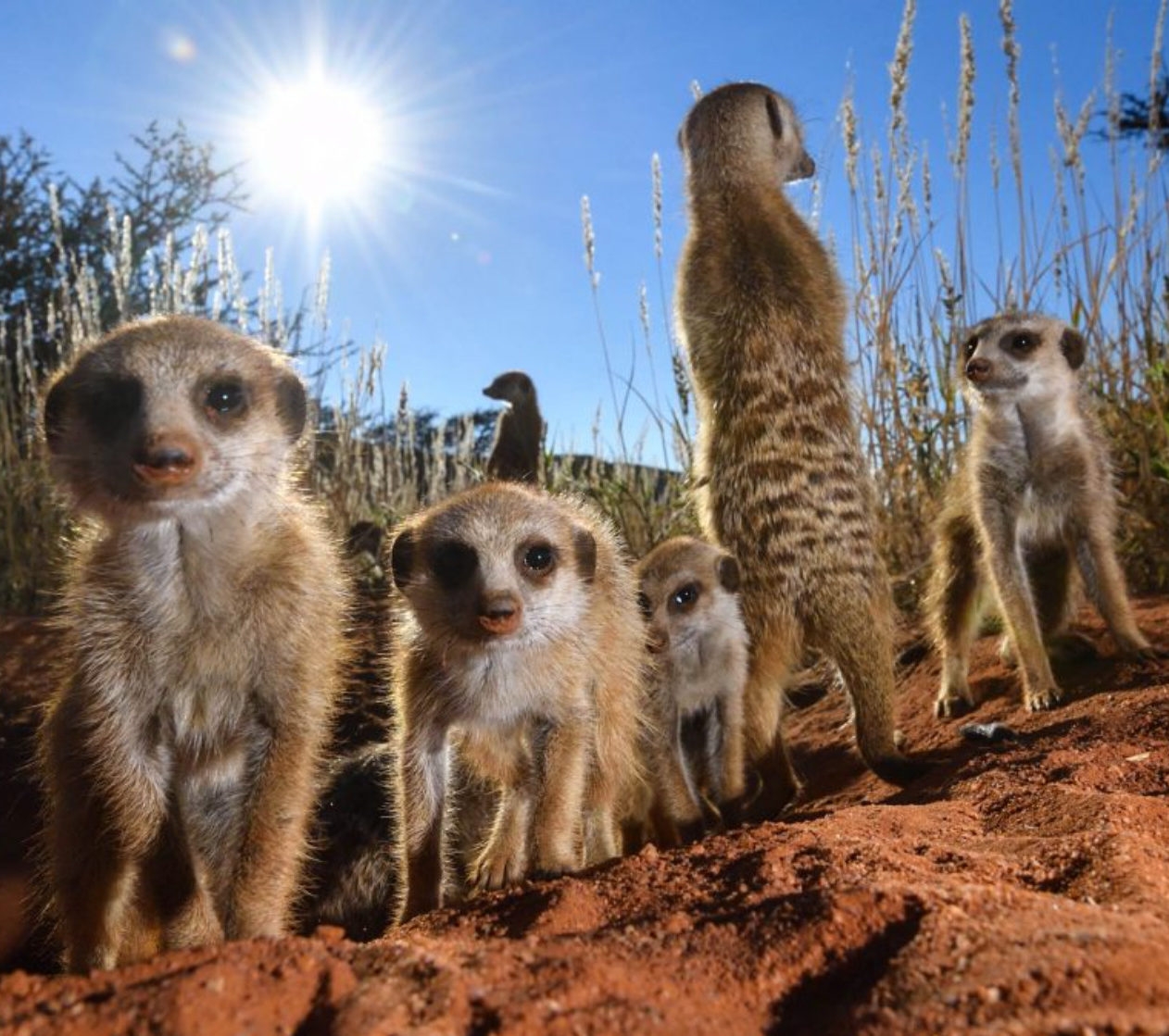 Wildlife: black rhino, Kalahari lions, meerkats, cheetah, antelope, hyena, giraffe, zebra, jackal, cape fox and more