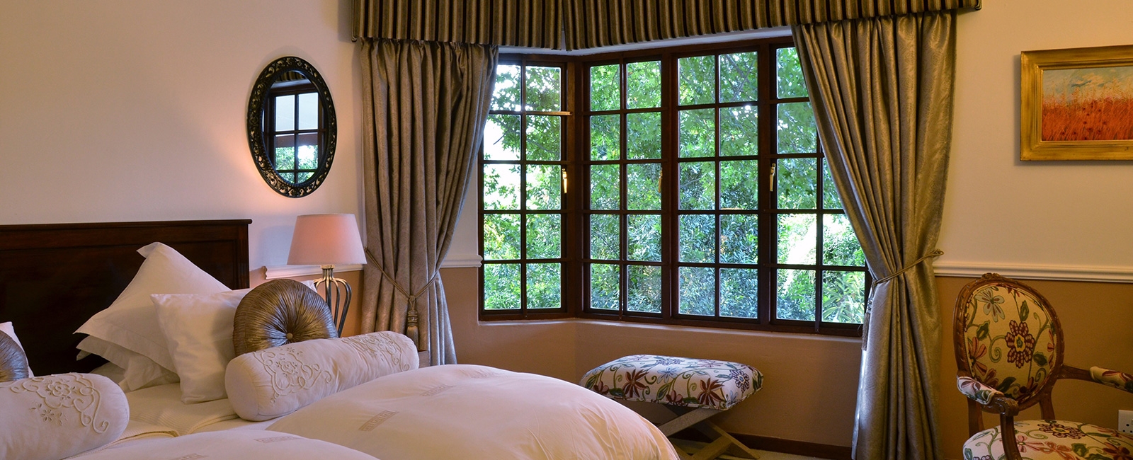 Follow the jacaranda lined drive up to the original 18th century farmstead. Renovations embellished its charm with period pieces – think crackling open fires and antique Persian rugs – and added all manner of creature comforts.