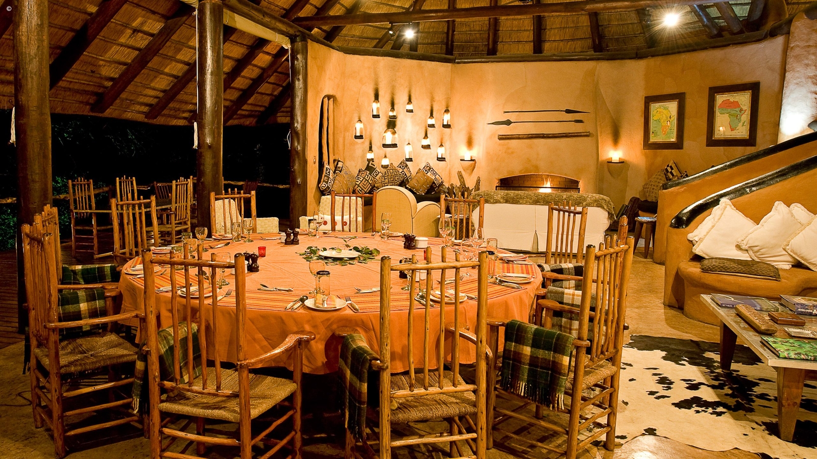 The design is a typically steep thatched roof and timber-framed building with more Moroccan and northern African-style interiors. Sparsely furnished with rough plastered walls painted in warm earth tones, the effect is one of natural elegance and characteristic comfort.