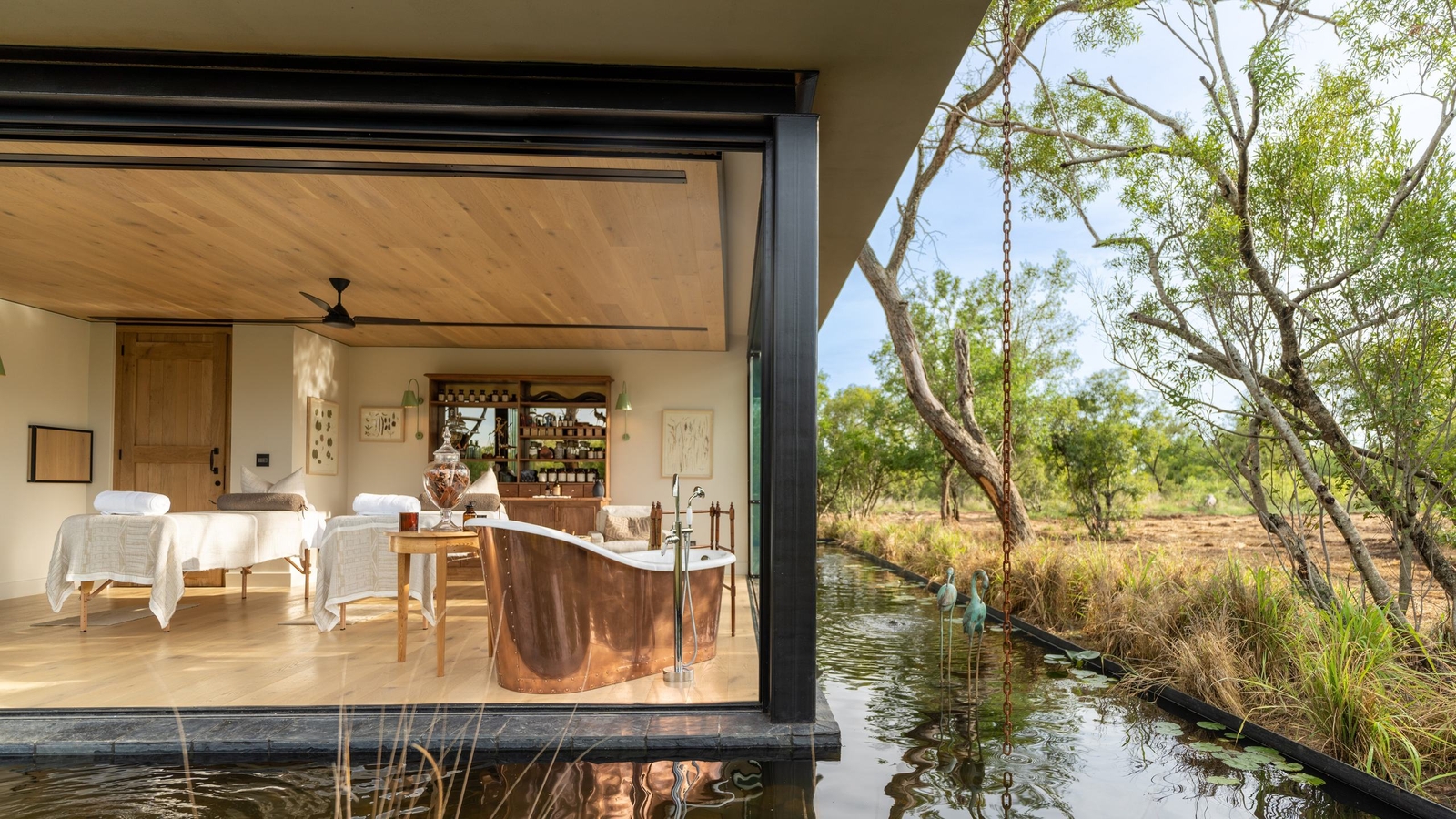 There are just four suites in here, two for families which sleep up to four people, a king size suite and one more private suite for honeymooners. All feature private decks or patio areas overlooking the ever-active waterhole or rugged bushveld. You can dine here in private in the evenings as herds of impala stroll by or convene in the communal dining area at the heart of the camp where you’ll also find the swimming pool.