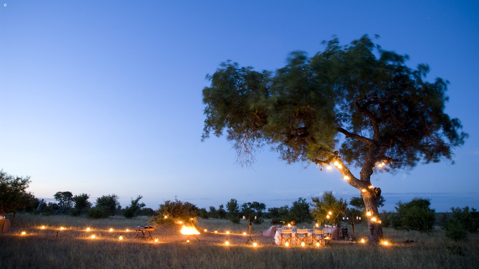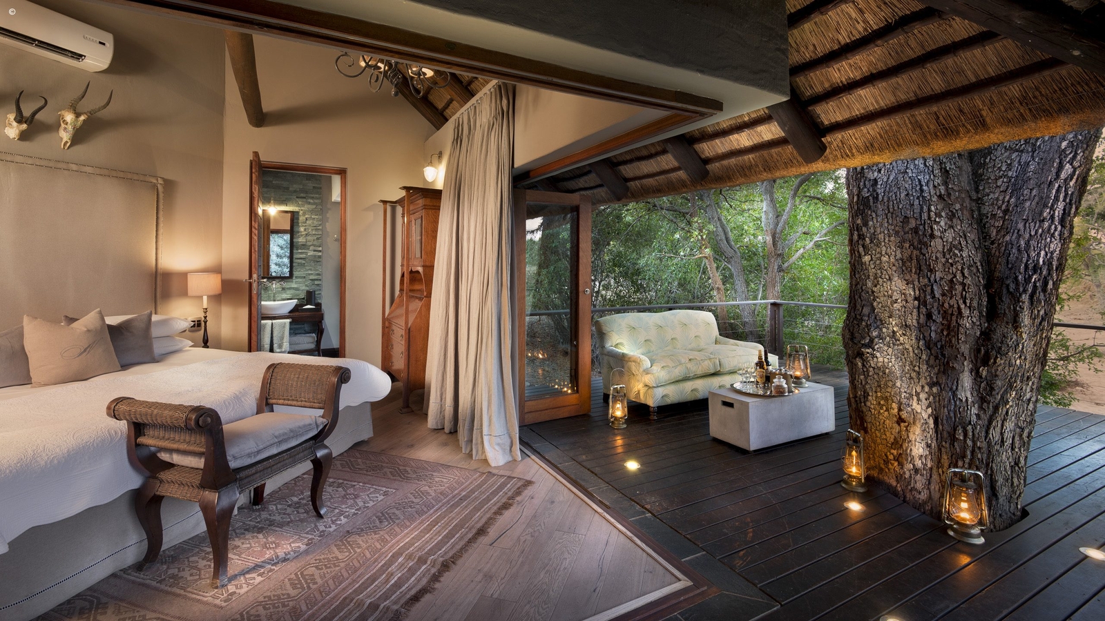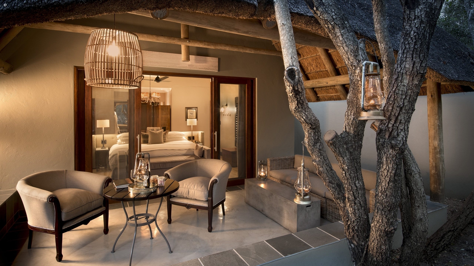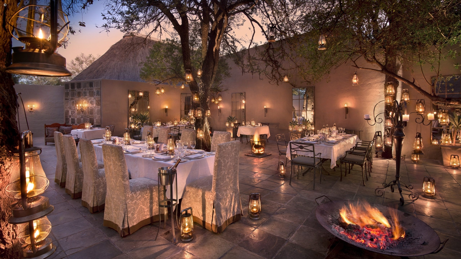 The chalets are well-equipped for both hot and cold weather with en-suite bathrooms and pleasant verandas, and the main lodge has a particularly inviting lounge done up in all the tradition of a hunting lodge sitting room. Dining is either in the romantic outdoor boma or lantern-lit in the walled courtyard.