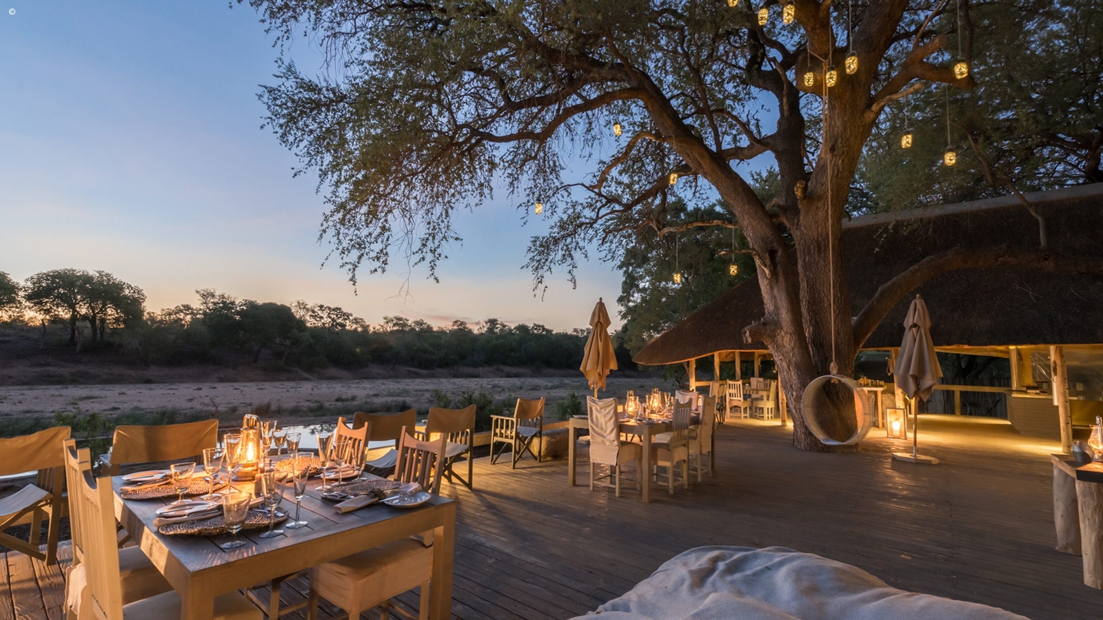 When you’re not out spotting wildlife, relax and unwind in the lounge or bar, which serves a great selection of South African wines, or take a dip in the swimming pool. The viewing deck overlooks the river, where wildlife sightings are common, and on balmy evenings you can enjoy dinner while watching the sun set over the African horizon.