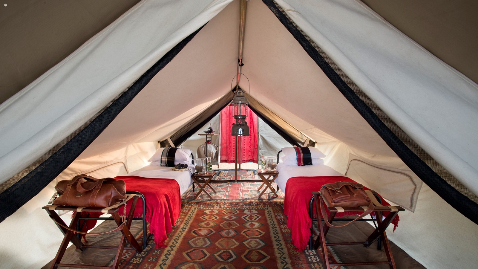 The classic camp consist of up to four custom-designed tents and a communal lounge reminding us of the authentic safaris of British and Dutch explorers. The tent style draws on traditions of the classic East African safari with beautifully detailed campaign style furniture and soft furnishings. The use of rich colours and luxurious leathers alongside oil lamps has created an unforgettable atmosphere that will take you back in time and bring you closer to nature.