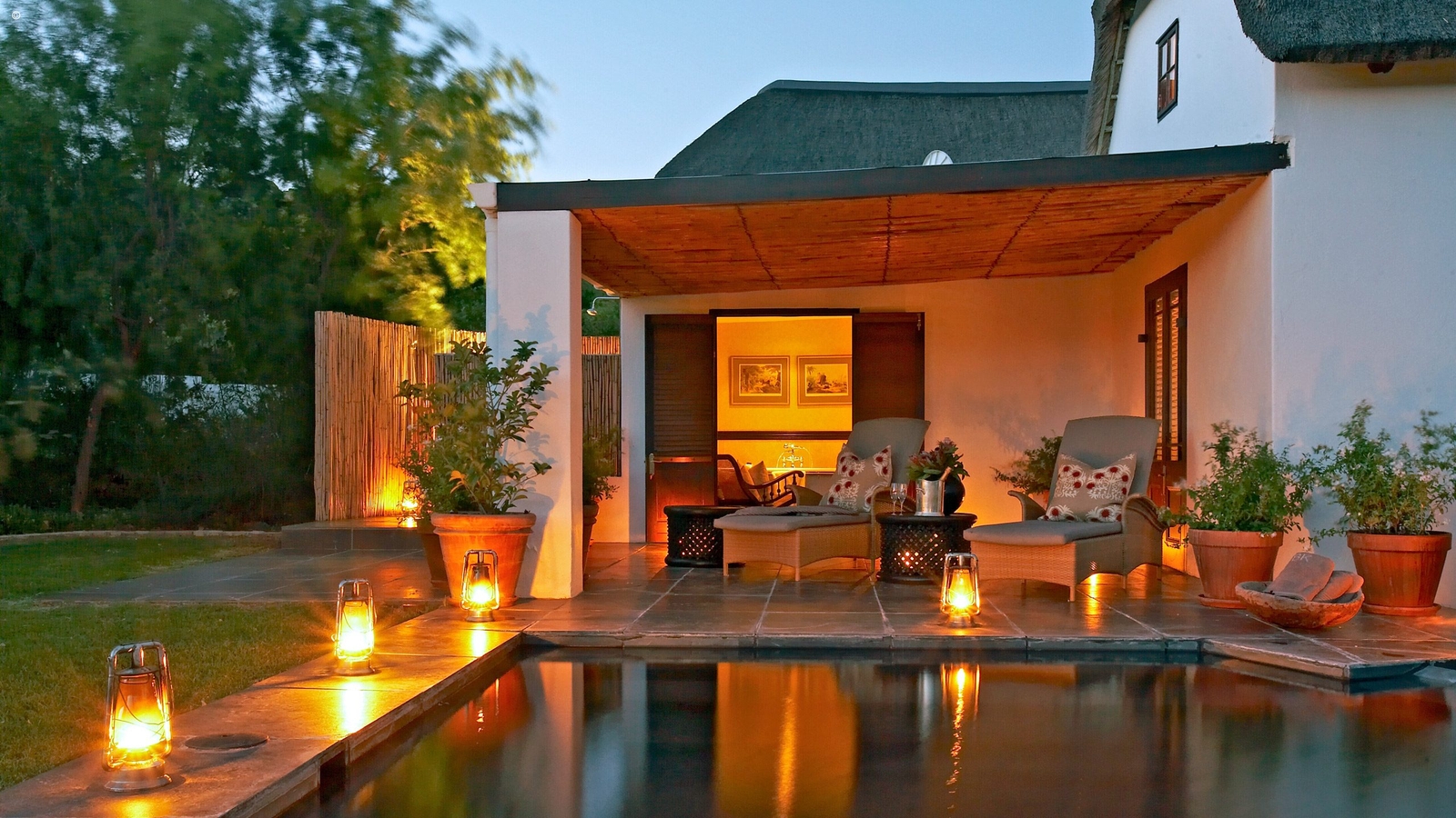 Set into a natural depression of the particularly magical terrain at Bushmans and surrounded by manicured lawns and verdant gardens which contrast heavily with the reserve’s rocky backdrop, this Relais and Chateaux property boasts four different groupings of rooms.