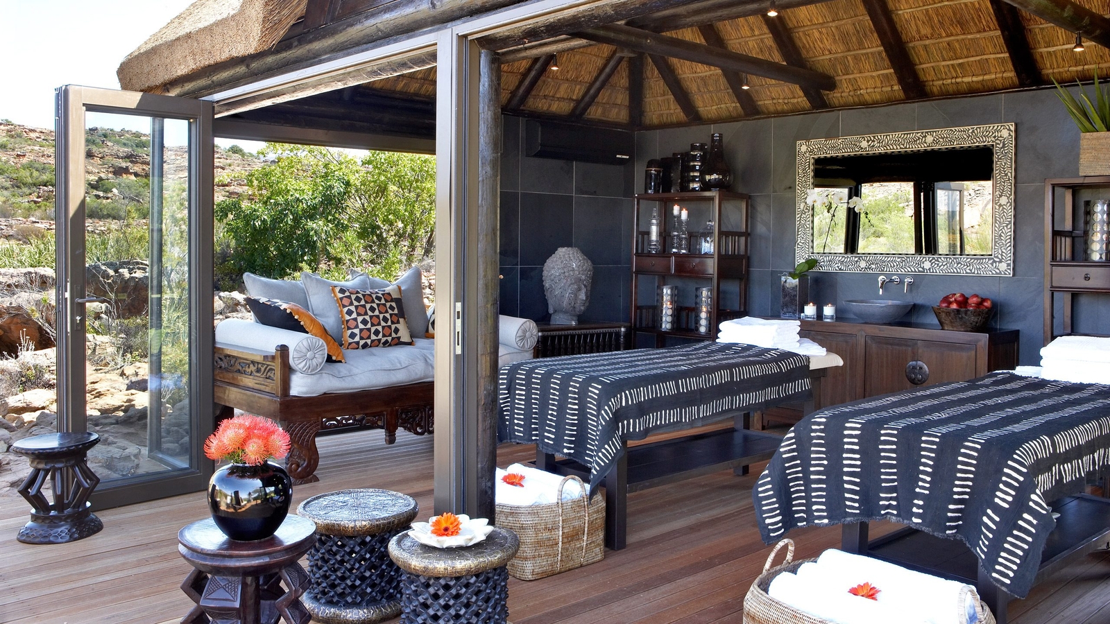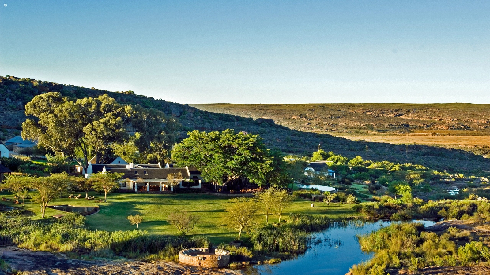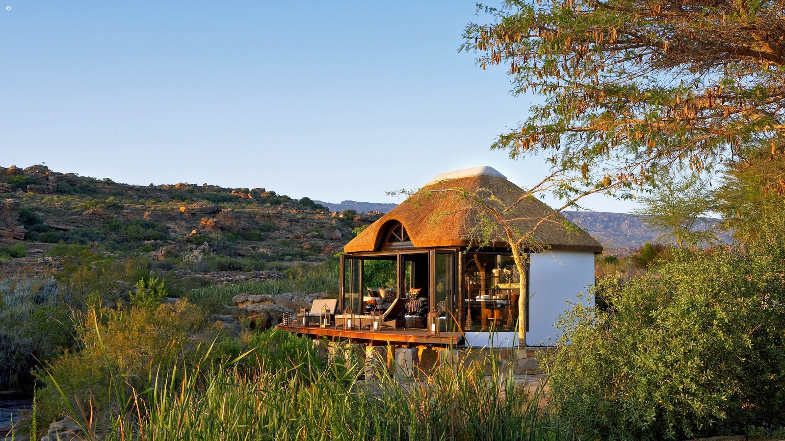 Set into a natural depression of the particularly magical terrain at Bushmans and surrounded by manicured lawns and verdant gardens which contrast heavily with the reserve’s rocky backdrop, this Relais and Chateaux property boasts four different groupings of rooms.