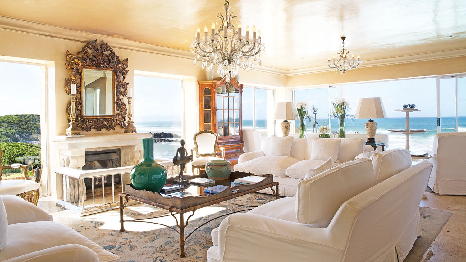 The interiors are an adroit marriage between traditional French-style furniture offset by antiques, and more clean modern lines using a fresh white and beige palette interspersed with expert use of vibrant colours that complement the views streaming in, and which mostly draws the eyes.
