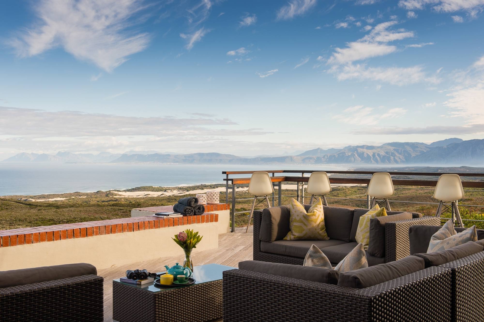 The clean lines, high ceilings and large windows frame and accentuate the incredible sweeping views across the rolling hills of fynbos and the whale sanctuary of Walker Bay beyond – on a clear day, it’s possible to see all the way to Cape Point. Orientated towards the setting sun, every evening offers another grand spectacle of light and colour.