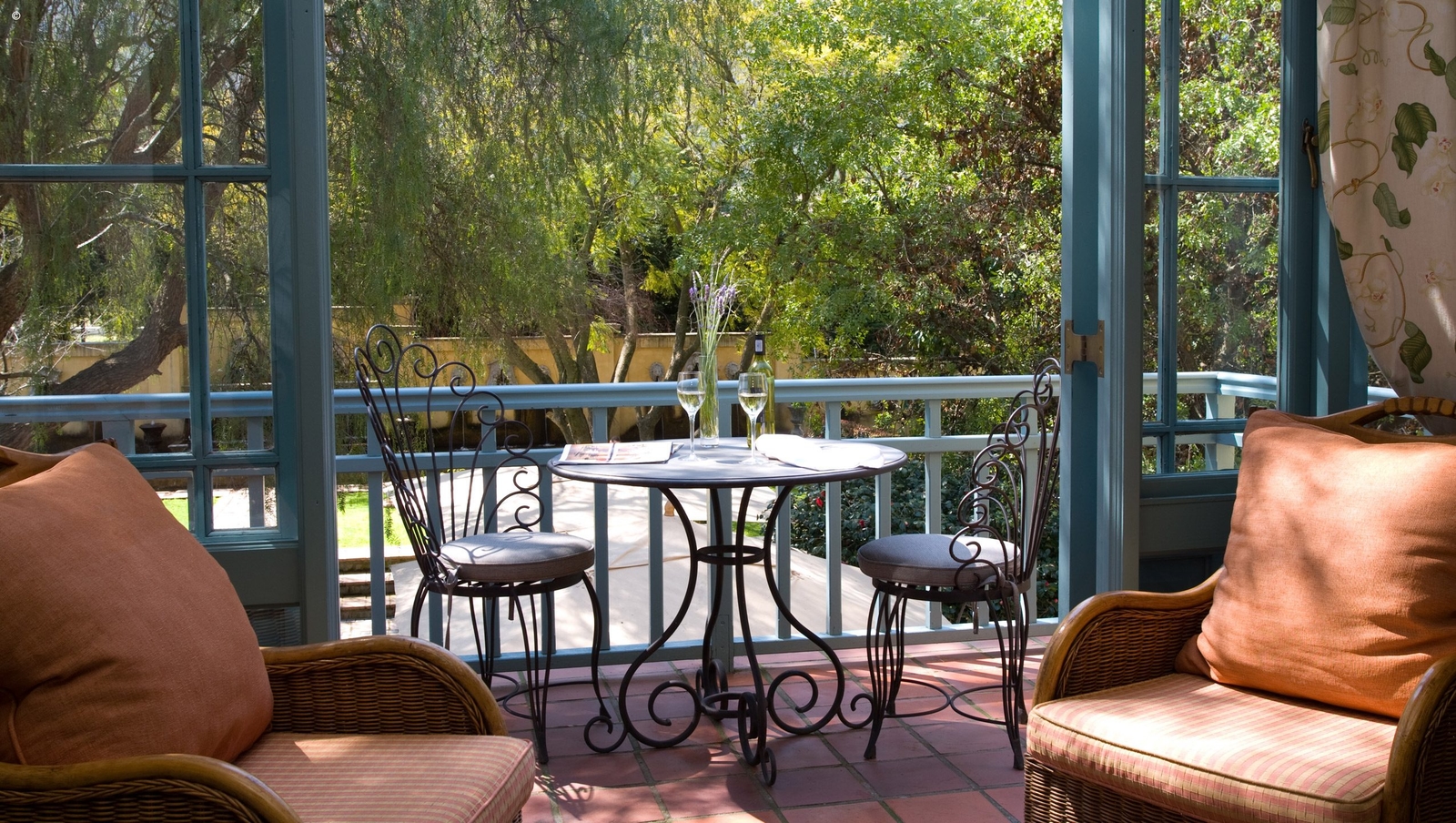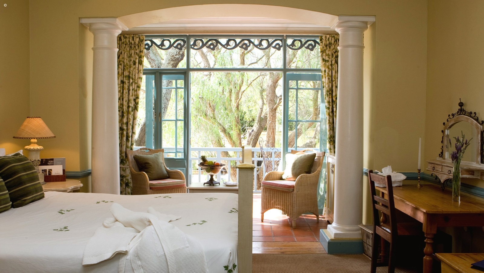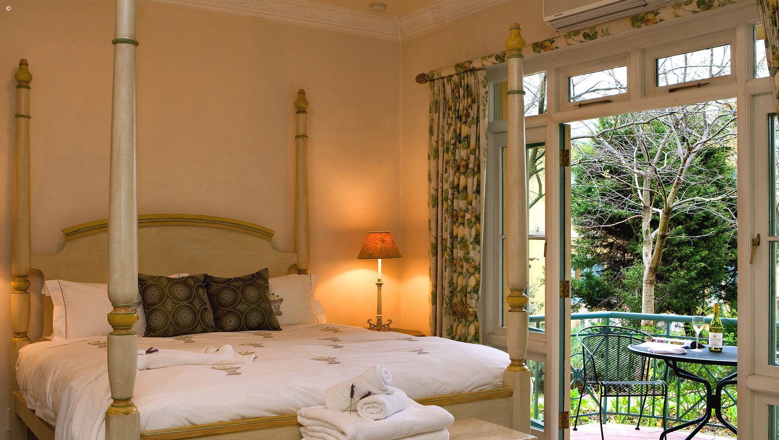 All the rooms are individually decorated, very spacious and reflect contemporary comfort fused with more classical trappings of hand-painted furniture, four poster beds, embroidered Percale cotton bed linen, and most have their own private balconies. There are six standard deluxe rooms in the manor house and five luxury rooms located in a separate building which have their own private balconies, fireplaces and underfloor heating. The two garden cottages with private patios and superb views of the vineyards and mountains are perfect for families with small children, whereas the 100m² villas suites with their own lounges and two balconies are ideal for honeymooners or couples.