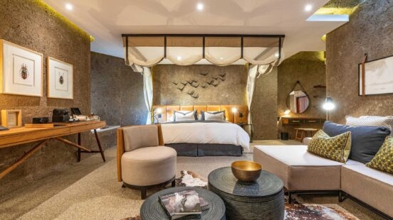 Within Sabi Sands, the Sabi Sabi Reserve is a must-see destination with an unusually high concentration of wildlife. It’s home to four award-winning lodges, among which the Earth Lodge deserves special mention. Its sustainably-focused suites combine contemporary design and chic minimalism with an undeniably cosy and romantic ambience.