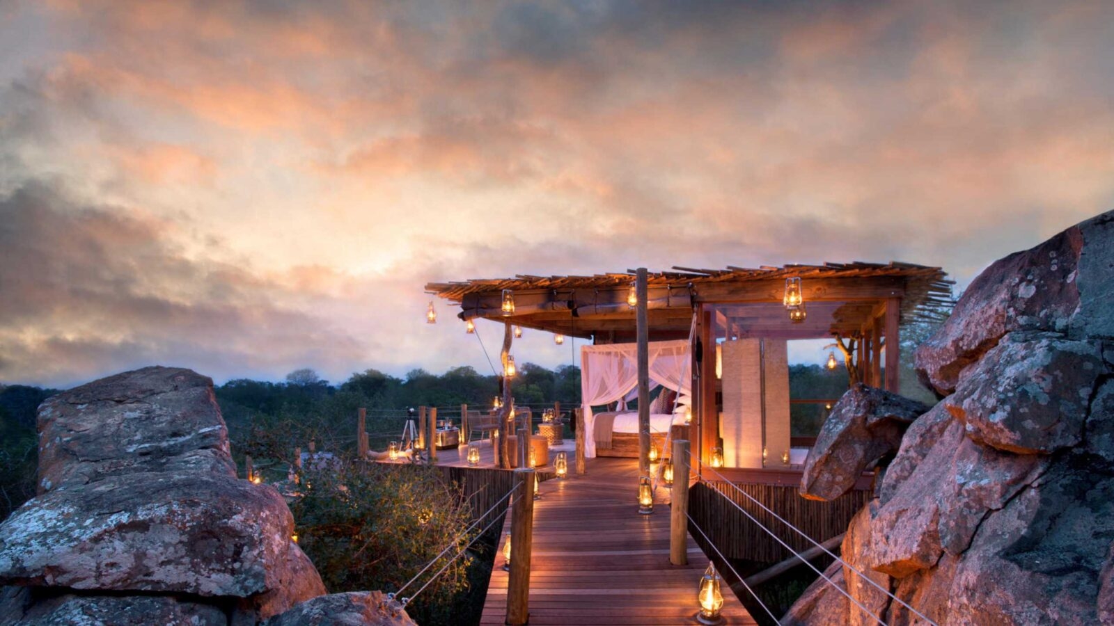 There are plenty of romantic things to do in South Africa. Some of our favourites include stargazing and sleep out experiences in treehouses and star beds. Private dining options are romantic, select candlelight dinners in secluded spots or gourmet picnics and bush breakfasts while on safari. Private sundowners at stunning viewpoints are the best places to toast your honeymoon and romantic trip for two.