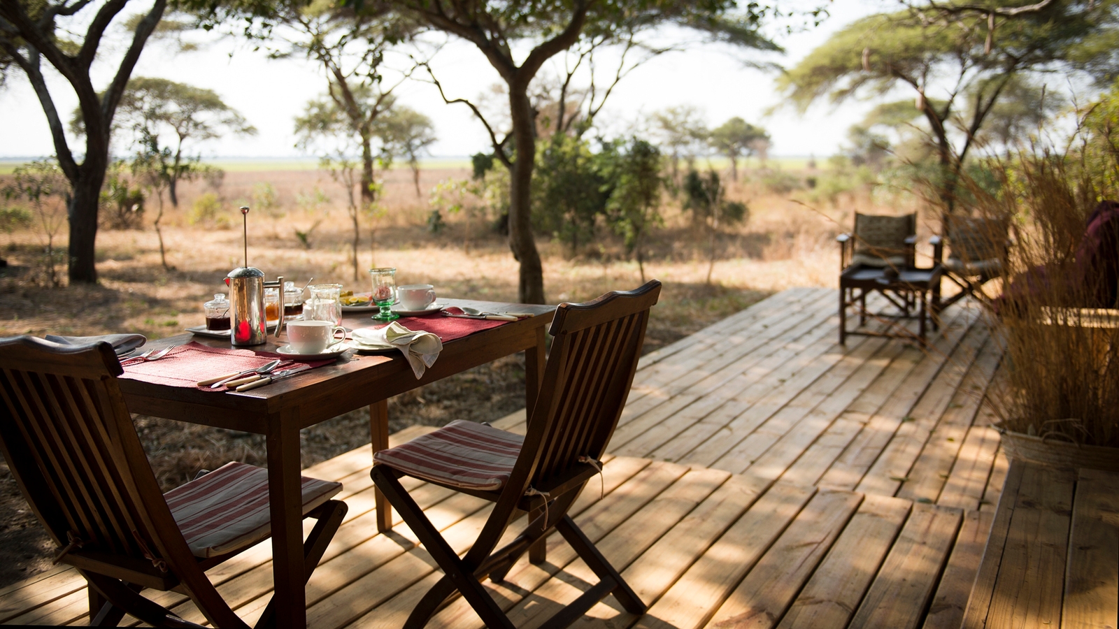 The camp has only six spacious and comfortable en-suite tents all elevated on brand new wooden platforms and look out over the wide open Chada Plain. The bathrooms have hot bucket showers to wash away the dust of the day and are delightfully ‘bush-deluxe’. Surrounded by acacia and tamarind trees, the camp feels a bit wild and rugged but the set up is stylish and nothing short of spectacular for its isolated location.