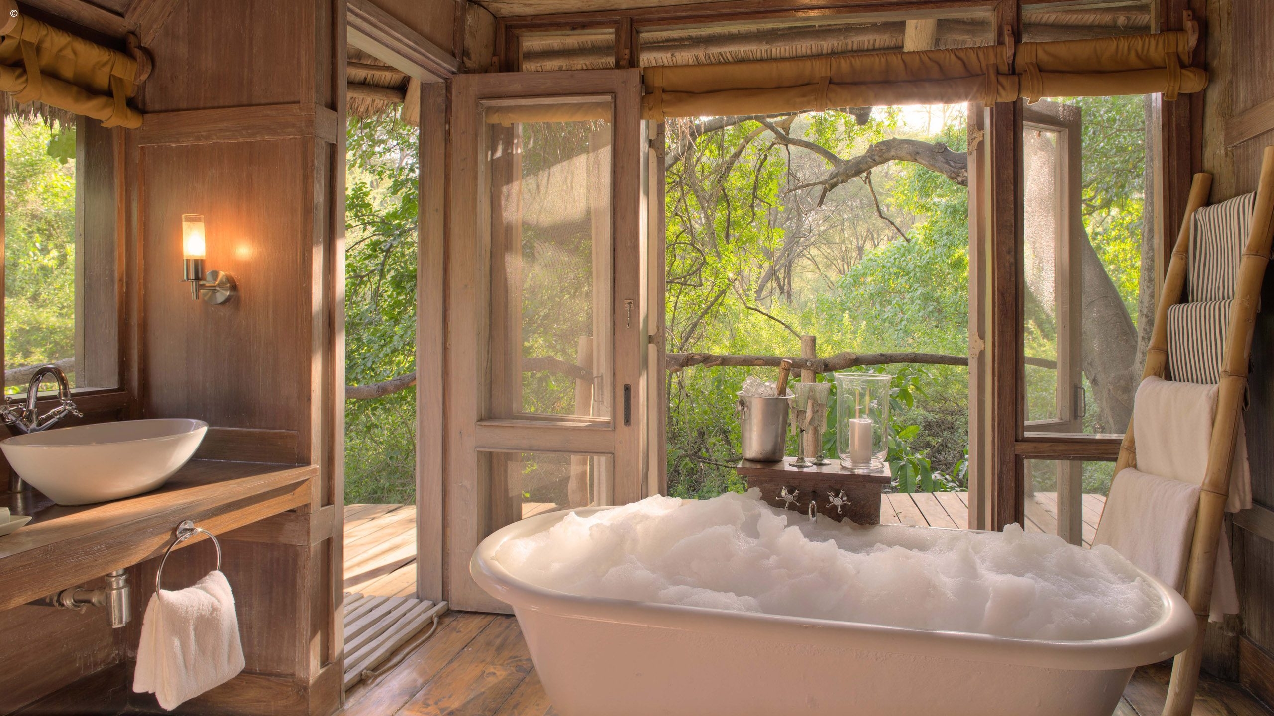 The elegant bedrooms are fitted with contemporary furnishing in neutral colours and textures, overhead fans and billowing mosquito nets. Each treehouse suite features decks suspended above the forest floor and large windows invite the lush forest inside, best enjoyed from the free standing bath or from under the steaming hot water of an outdoor shower.