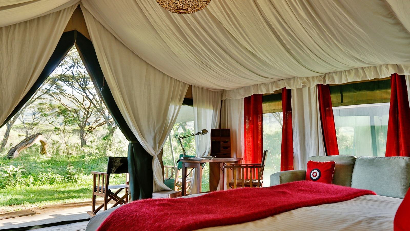 Classic tented safari camp on the crater rim.