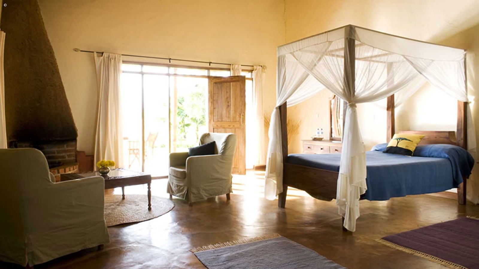 Rustically decorated using local materials and boasting colonial artefacts and bare brick fireplaces, the 52 rooms are scattered throughout the estate and house large comfortable beds with private en suite bathrooms and verandahs. The farmhouse style building with a thatched roof and wrought iron chandeliers houses the relaxing lounge and restaurant. With an extensive south african wine selection and locally grown coffee you will be spoilt for choice.