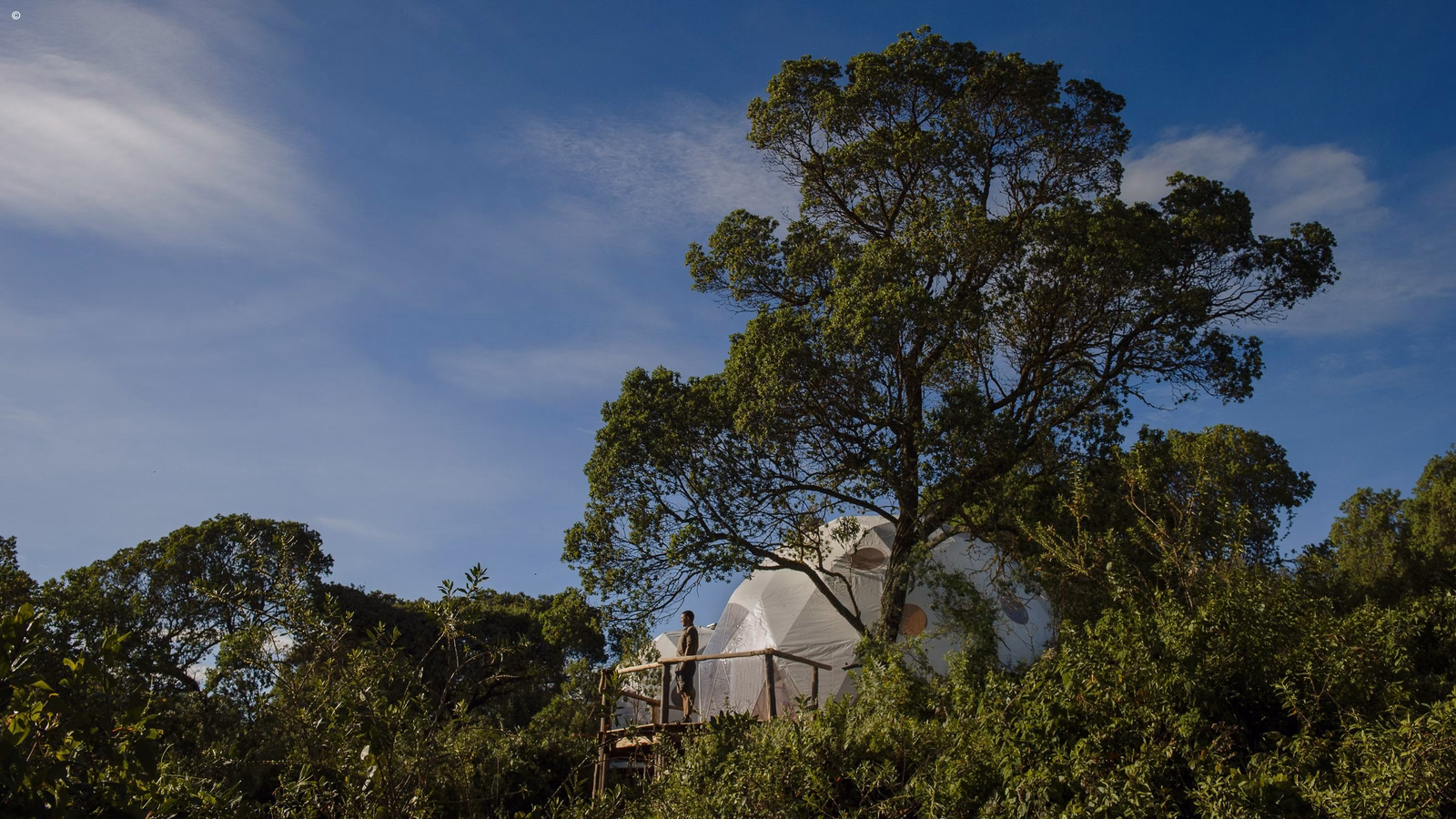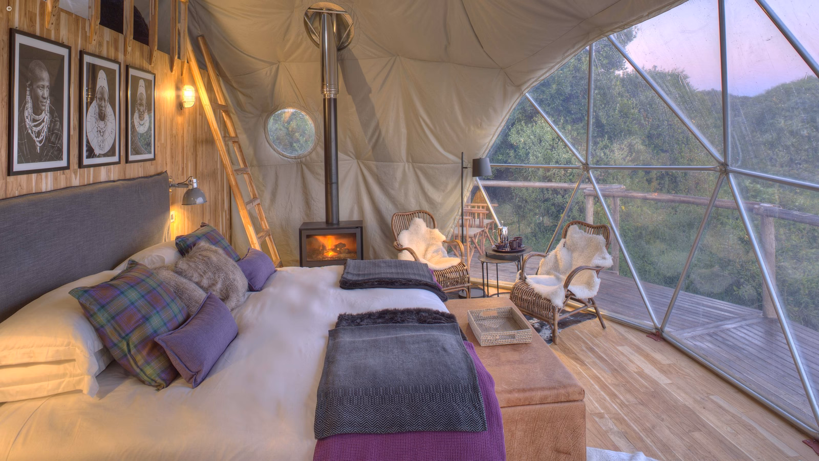 Eight domed perspex-and-canvas suites offer king-sized beds with floor-to-canvas-ceiling bay windows opening out to the spectacular views, en-suite bathrooms and wood-burning stoves for the cold winter evenings. One is designed to accommodate two adults and two children and the honeymoon suite is a little bit more private with a large elevated deck and an outdoor hot tub.