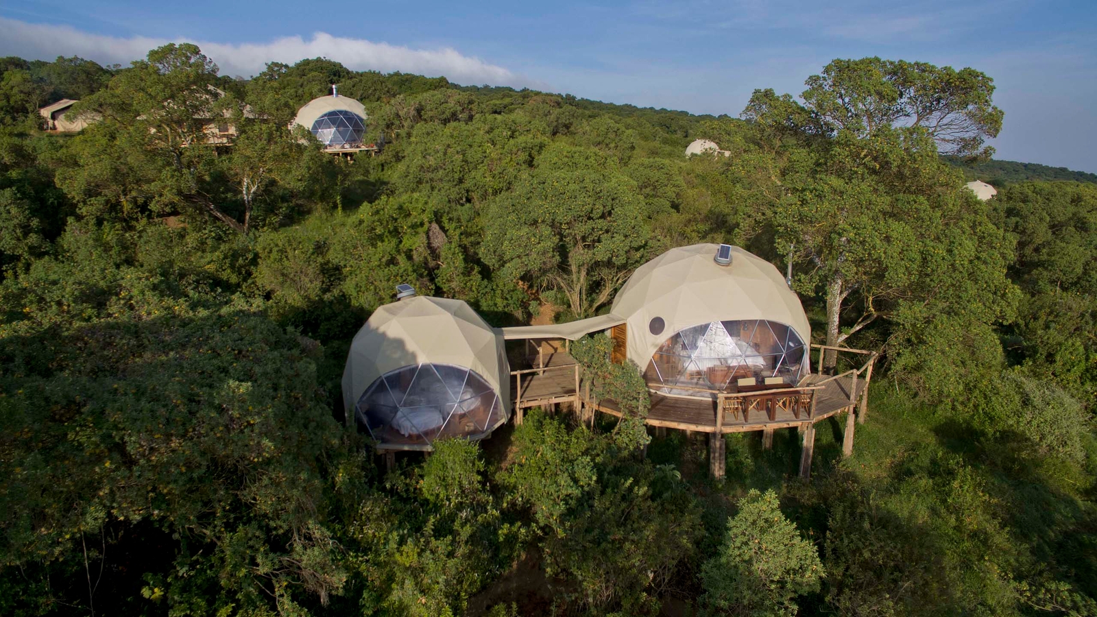 Eight domed perspex-and-canvas suites offer king-sized beds with floor-to-canvas-ceiling bay windows opening out to the spectacular views, en-suite bathrooms and wood-burning stoves for the cold winter evenings. One is designed to accommodate two adults and two children and the honeymoon suite is a little bit more private with a large elevated deck and an outdoor hot tub.