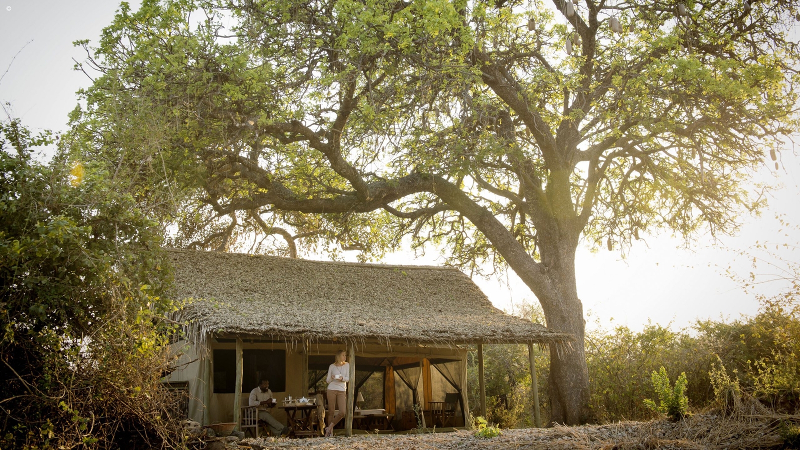 A grove of Kigelia trees is home to this simple tented camp, a location in the best game area of Ruaha National Park with a focus on the essence of safari.