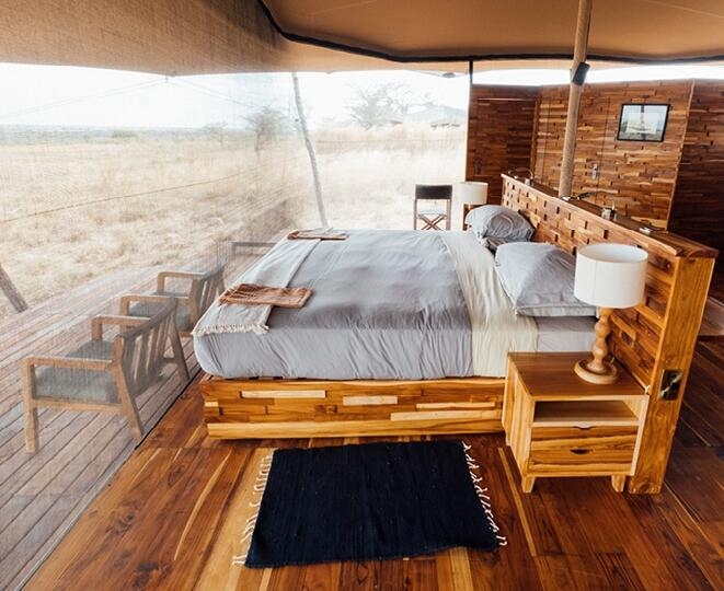 The crater itself can get quite busy but there’s a peaceful quiet that flows through the rooms, social areas and outside spaces of the lodge. North and South Camp both have twelve beautiful suites and the Tree Camp, slightly set apart from the others, has just six. Raised up on stilts, these rooms are all tastefully decorated with Tanzanian hardwoods and silk curtains which make the rooms cosy and warm; the ridge can get quite nippy, after all. The dining areas have viewing decks and comfortable indoor lounges which are ideal for catching up on some midday afternoon reading, or ticking off the birds that you might have seen so far. You could also decide to have a relaxing massage in your room, and completely pamper yourself.
