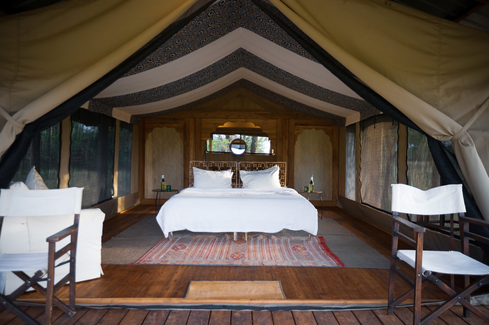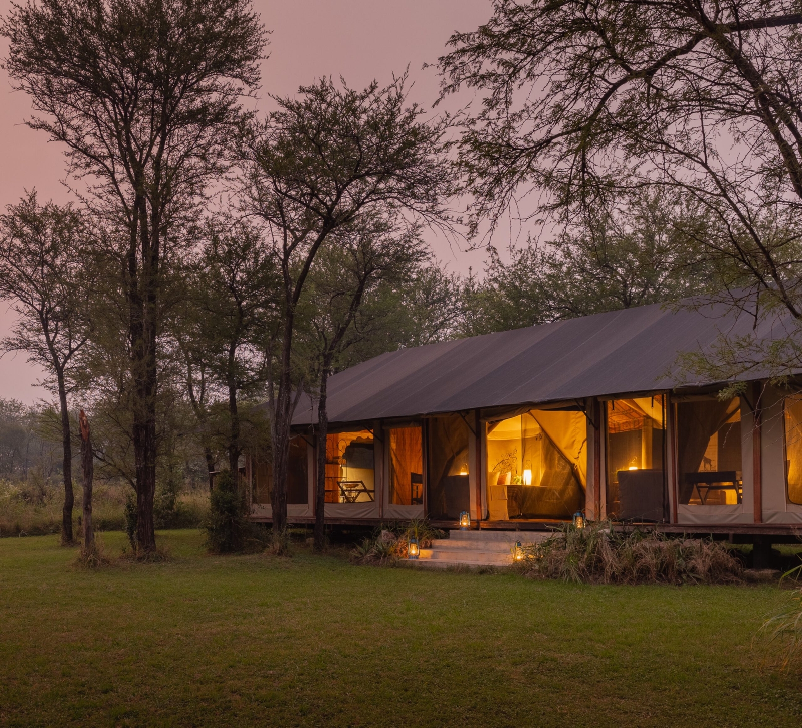 Eight luxury tented suites are widely spaced to ensure absolute privacy, sat on the edge of a palm island overlooking Lake Manyara waters. One is a family suite with two bedrooms.