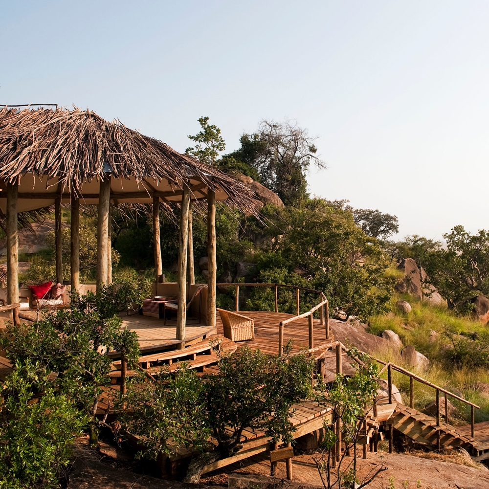 Lamai Serengeti Lodge has a pride of place up on a kopje overlooking the vast open Serengeti plains towards the Maasai Mara in Kenya. With just 12 delightfully stylish rooms all perched in, around and on top of the rock, you will be extremely well catered for and feel heartened by this little bit of paradise.