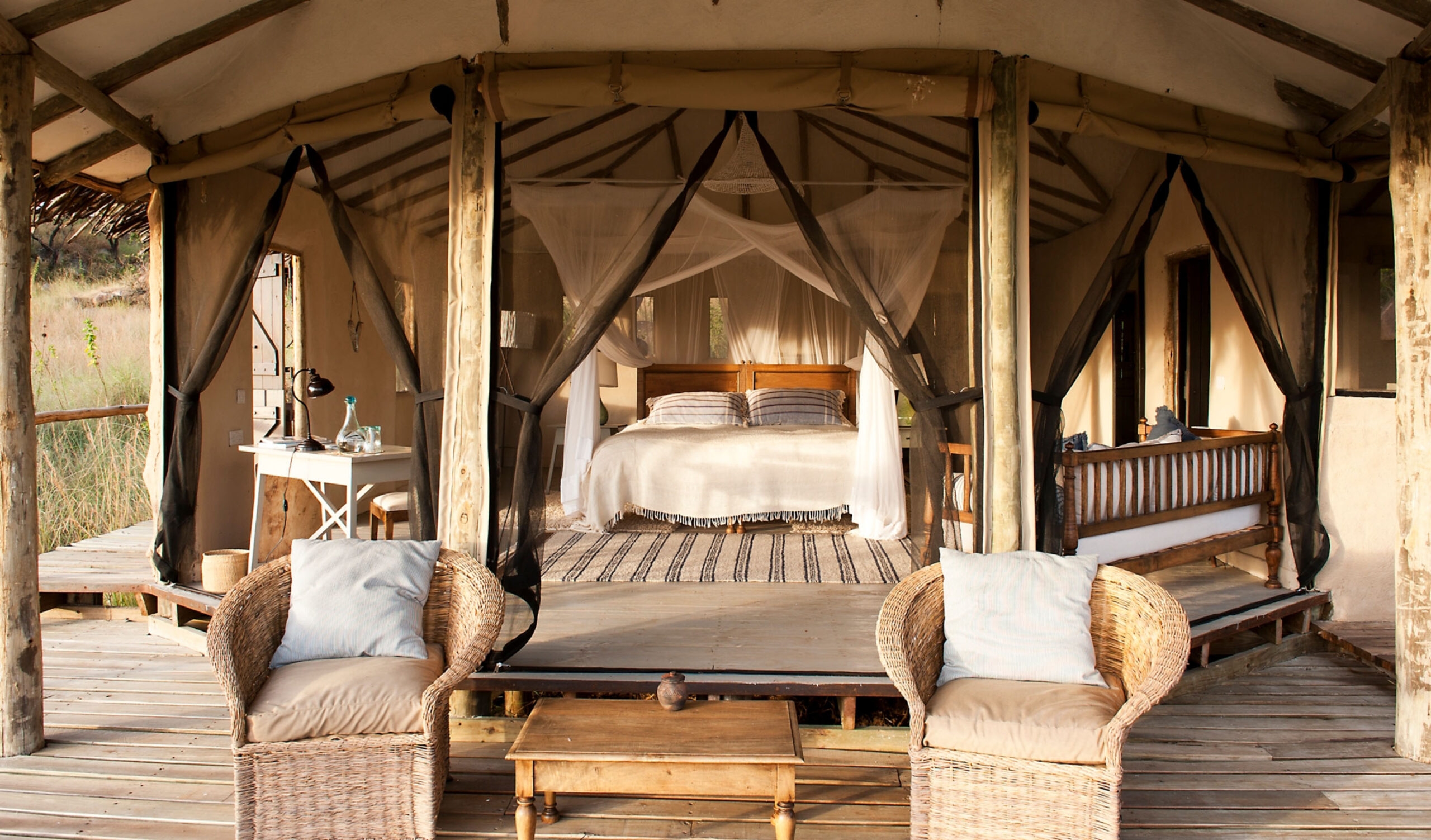 Eight luxury tented suites are widely spaced to ensure absolute privacy, sat on the edge of a palm island overlooking Lake Manyara waters. One is a family suite with two bedrooms.