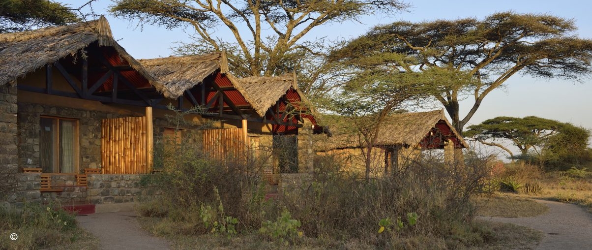 The lodge is made up of 34 stone cottages, each with en suite facilities and a private verandah that looks out towards Lake Ndutu. Rooms have lots of character with large wooden beds and African fabrics. The open-sided bar and lounge allows guests to relax and unwind while enjoying the views out across the bush. Every evening staff and visitors gather around the campfire and exchange stories from their game drives.