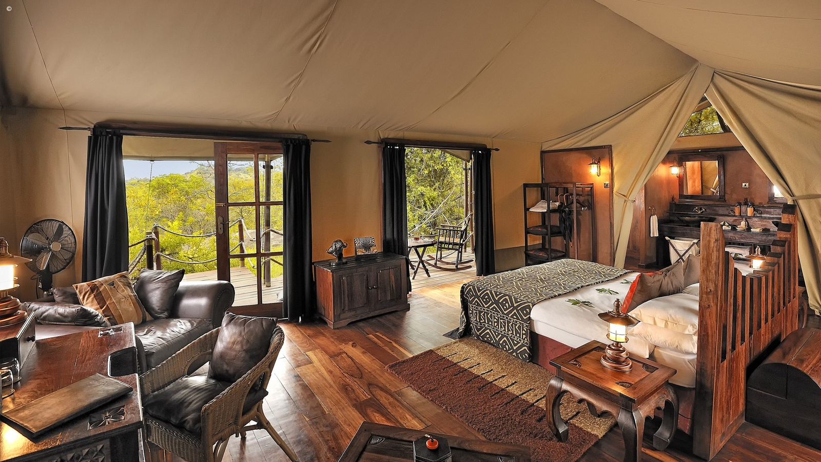 The camp has 20 extremely spacious suites, all with a modern colonial decor of dark woods and fine detail making them warm and homely. Each tent has a private 180º decking which allows for some magnificent views of the surrounding Serengeti landscape.