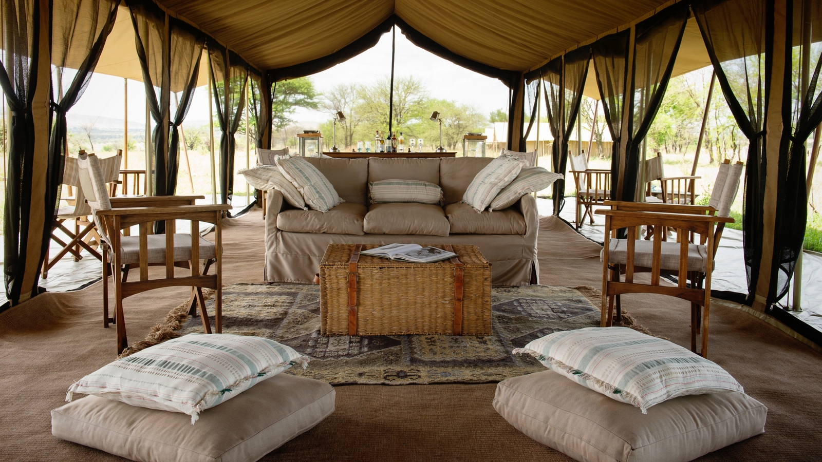 A mobile camp in the truest sense of the word, the Serengeti Safari Camp covers hundreds of miles throughout the year, moving every few months to be in the best location for the migrating herds of wildebeest and zebra.