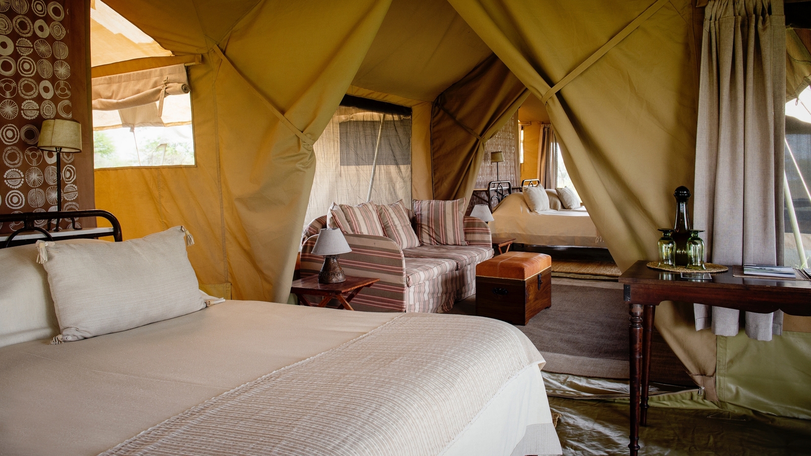 Never uprooted during guests’ stay, they will predict the movement of the game as best they can and set up the traditional safari camp right in the thick of it allowing you prime access to this remarkable natural spectacle. With the focus on the experience, you will have your own private guide and vehicle who will plan each day with you tailored to match your needs and at a pace that suits you. If you wanted to be on the road before the sun rises and only return when the sun goes down then that shall be the order of the day.