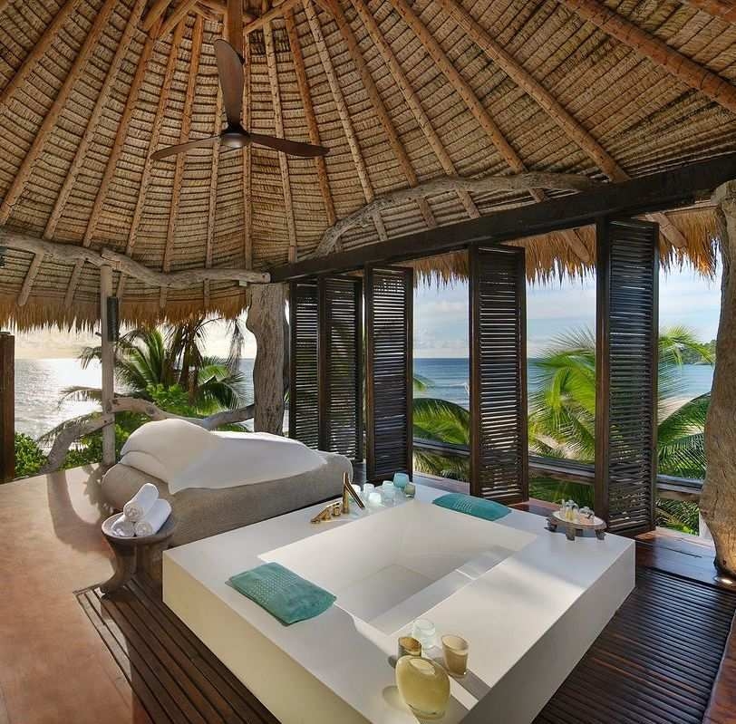 You will feel totally remote and immersed in nature during your time here, with your days filled with the sounds and sights of the Seychelles‘ birds and vibrant coral. You can go diving, fishing and kayaking, along with swimming and snorkelling. There’s also a small population of giant tortoises to observe as they slowly meander their island. North Island is known for its sustainability efforts and admirable drive to conserve and reintroduce many of its species. Stay in sumptuous private, palapa-style villas, and enjoy elegant areas around the island for relaxing and dining. There’s a wine cellar, library, boutique and delectable cuisine to sample.