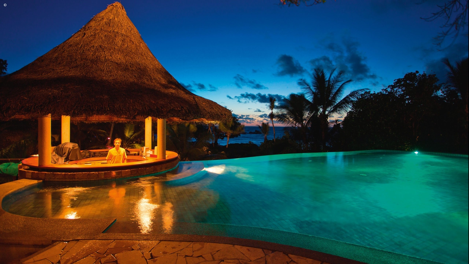 You’ll find the 105 spacious suites and villas – 88 Junior Suites, 8 Senior Suites, 8 Villas and a Presidential Villa – nestled amongst 101 hectares of lush jungle, spread over several levels to accommodate the island’s topographical layout for an integrated, natural feel. Featuring a cool, colonial style, the resort has made use of wood, stone, pink granite, marble and thatched palm for a modern yet warm impression. This island hideaway has no less than four restaurants and five bars to choose from for your evening entertainment, offering a choice of Seychellois and European cuisine.