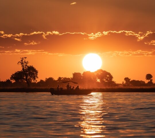 Take in the sunset along the Okavango Delta