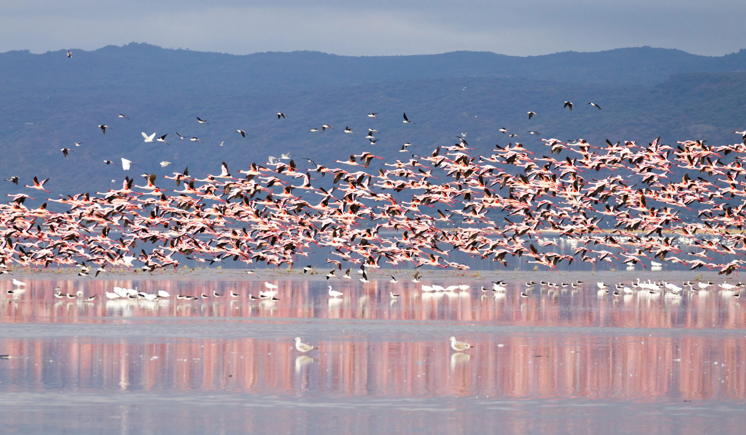 Marvel at the sight of thousands of pink famingos feeding on algae on the shores of Lake Manyara. It’s quite an impressive sight during the wet season. There are also a variety of other aquatic birds to look out for including pelicans, ducks, storks, kingfishers and spoonbills.