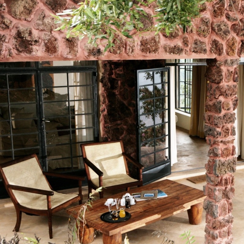 The main lodge offers soft and plush finishes with turned wood, and commissioned artwork from Ugandan artists adorn the walls throughout.