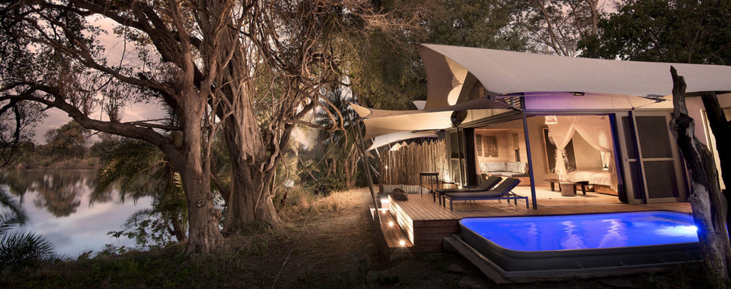 Take in the sunset over the Zambezi from your suite’s private plunge pool