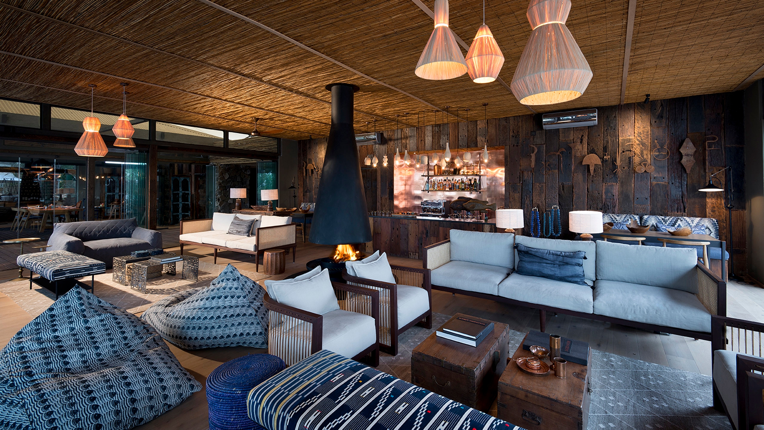 There are just six spacious tents here sat on platforms which open up dramatically to the surrounding plains and feature both indoor and outdoor showers. One is a family suite which features one double and one triple room. The communal thatch building has lounge, dining and bar areas, with stairs leading down to a fire pit.