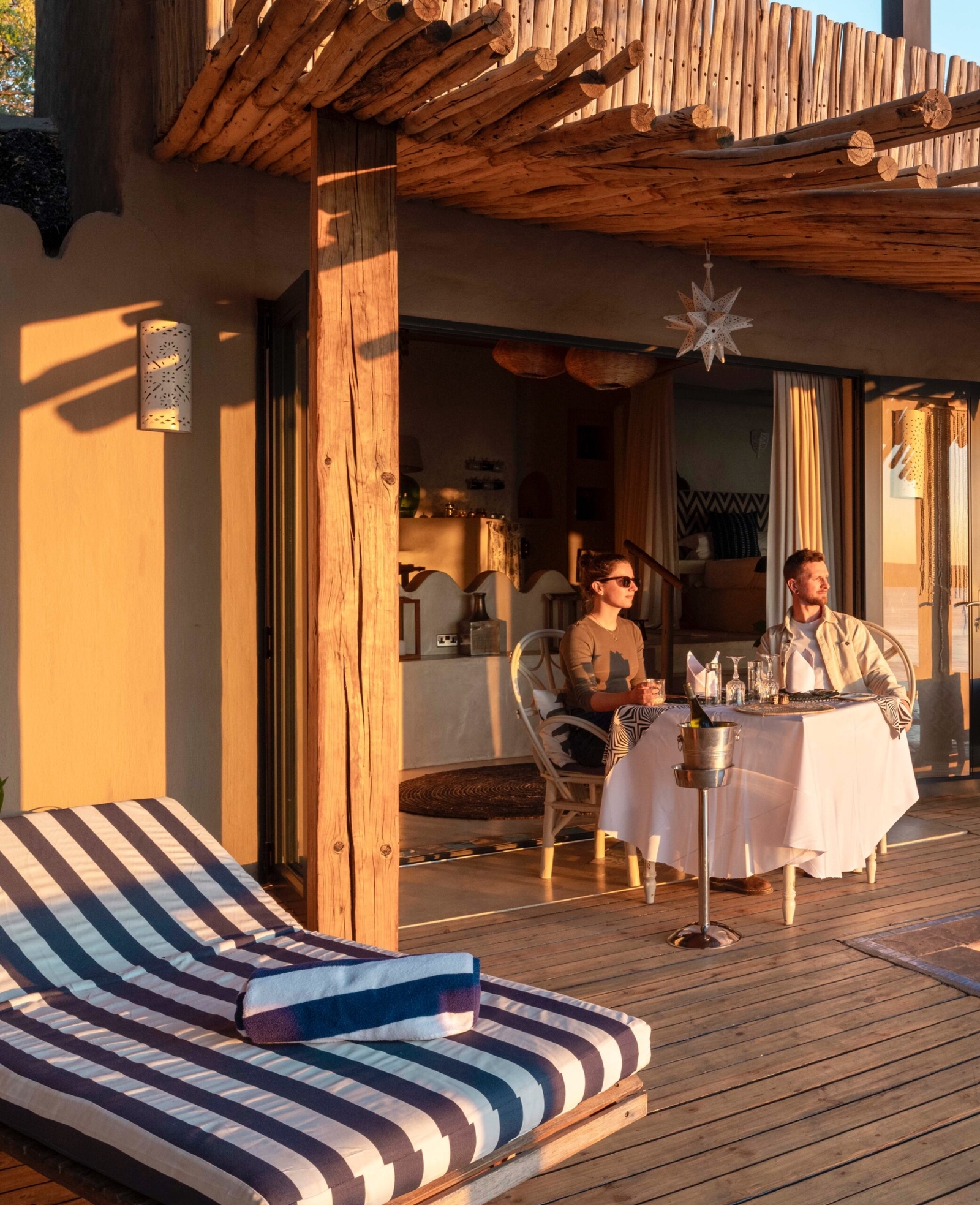 The five cottages and seven open-fronted houses that make up the camp have bags of personality and character. Some come with private wooden decks and plunge pools overlooking the river, others open-air clawfoot tubs inviting romantic evenings under the stars. The garden house, with a protected lawn and plunge pool, provides total privacy. Attention to detail is evident in everything from the elegantly canopied beds to carefully chosen artwork.
