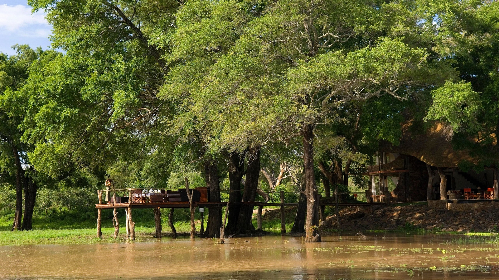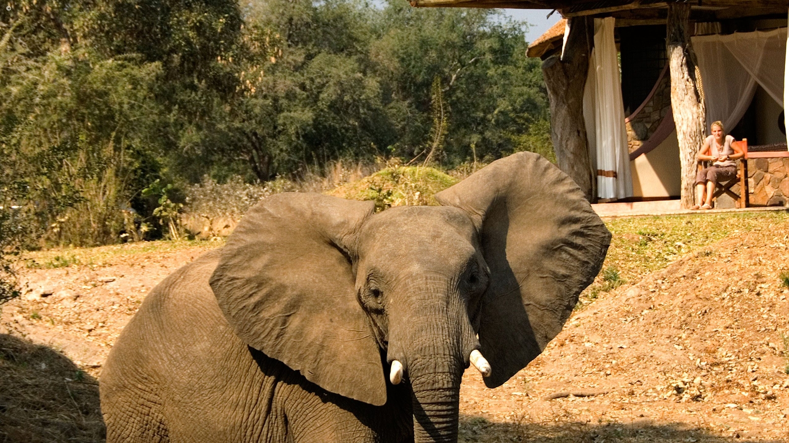 On the edge of a seasonal lagoon and with a backdrop of the Chindeni Hills, the game, including herds of elephants and journeys of giraffe, use this area to feed and water throughout the day. During the dryer months you can be lunching on the deck with up to forty elephants around you.