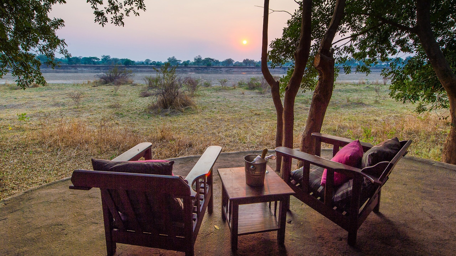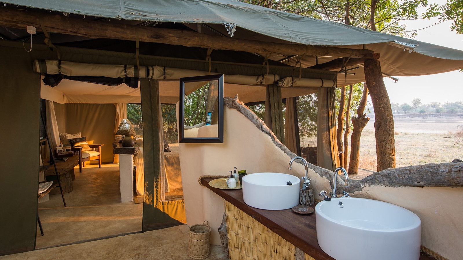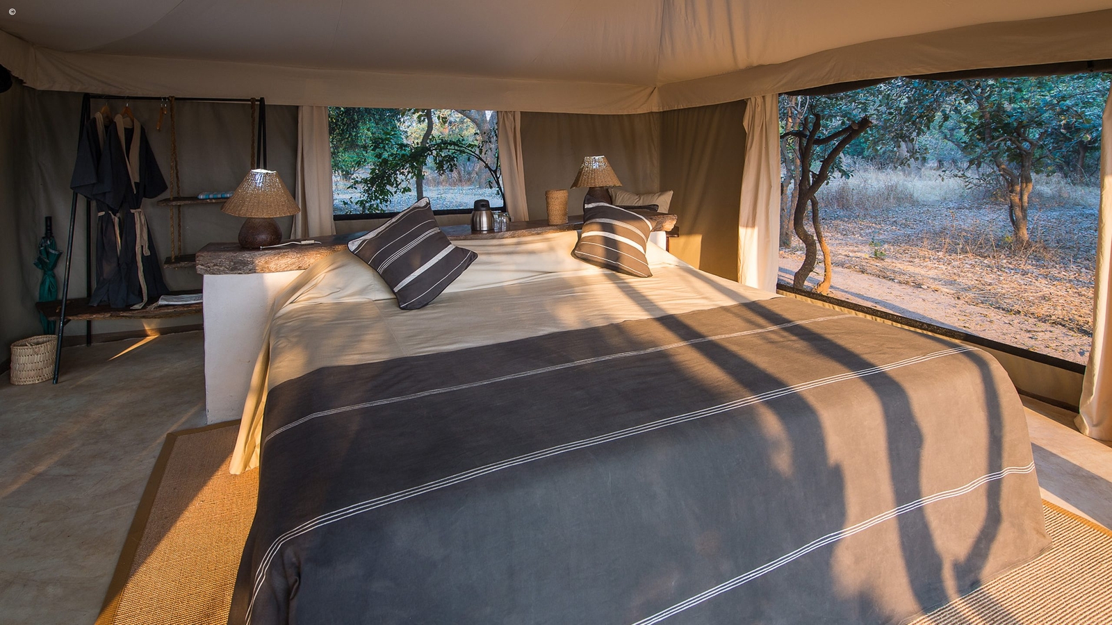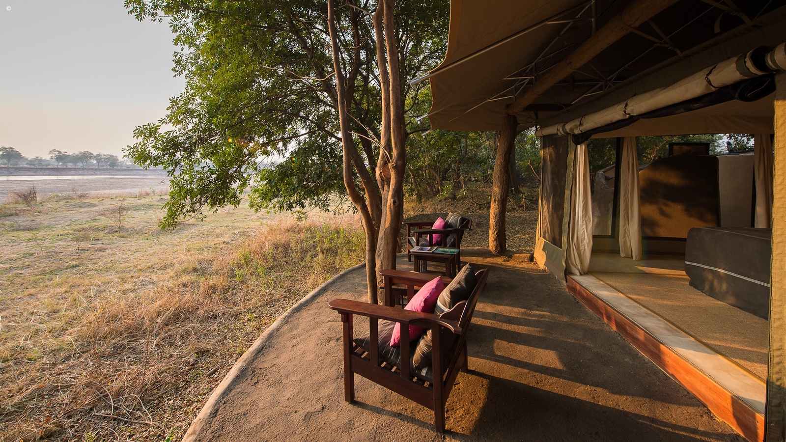 In the remote north of South Luangwa, on the edge of the Luangwa River, Tena Tena is surrounded by unspoilt wilderness, under a thick grove of mahogany trees.