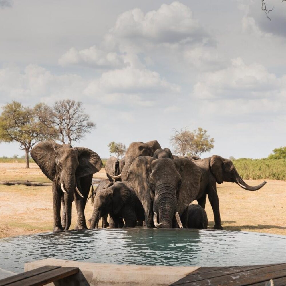 - Hwange National Park grapples with prolonged droughts. Little Makalolo, along with neighbouring lodges, plays a crucial role in establishing and sustaining a network of man-made boreholes to supply water to wildlife. This effort, notably, has led to the thriving of elephant herds in the region. In the dry season, guests can witness a diverse array of wildlife congregating at the same watering hole for a much-needed drink.