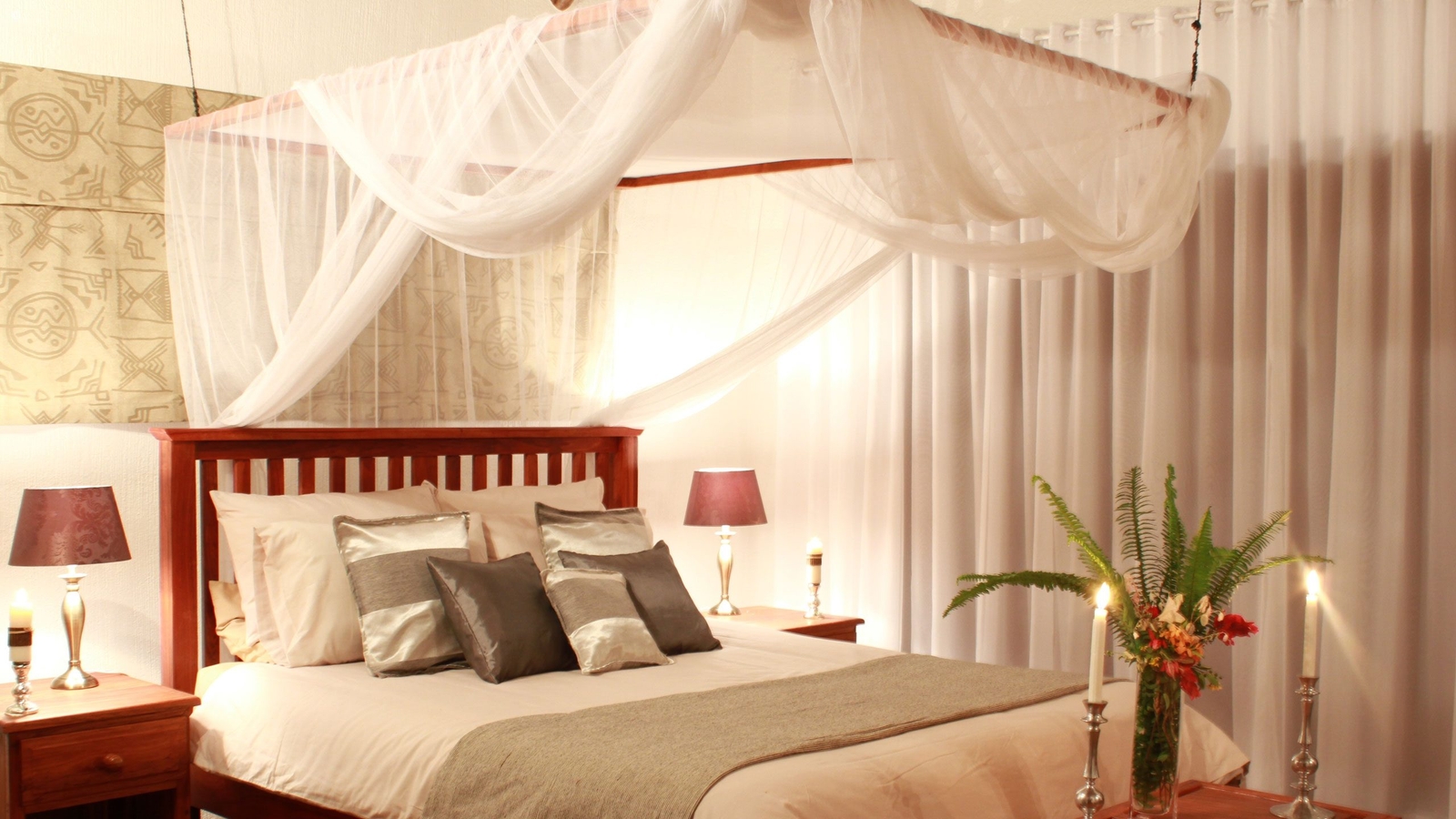 Enjoy romantic river views from your sheltered balcony or private veranda and look out for the resident bird-life of black eagles and falcons as they soar overhead. The accommodation here is designed with a thatched rustic look and provides plenty of comfort and modern amenities such as en-suites and mosquito nets.