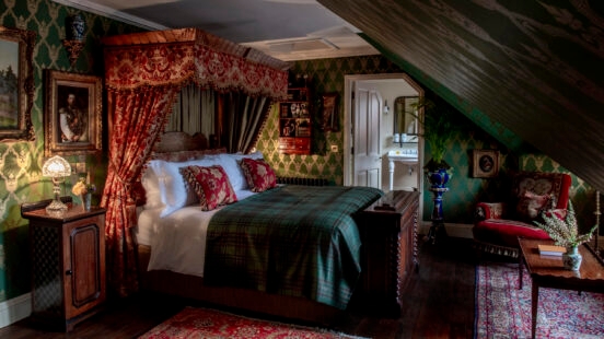 The hotel’s collection includes contemporary pieces from artists such as naturalist James Prosek who designed Fife Arms’ coat of arms, along with a vast assortment of Scottish artworks. Fife Arms also utilises local talent, with the red squirrels in the children’s room hand-knitted by a local knitting group. The hotel even features an intriguing taxidermy collection that’s formed by over 100 pieces.