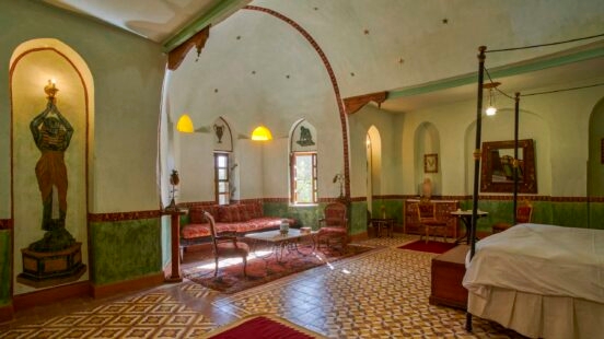 The Al Moudira is a peaceful haven in Luxor, on the west bank of the river Nile in Egypt. The rooms feature hand-painted frescoes and the signature suites are engulfed by coloured-glass ceiling art. Zeina Abou Kheir, the hotel’s founder, is an accomplished international Lebanese jewellery designer. She fell in love with Egypt and has meticulously crafted the interiors of Al Moudira to celebrate the country; the painted glass is from Alexandria and the hand-painted floor tiles hail from various cities across Egypt.