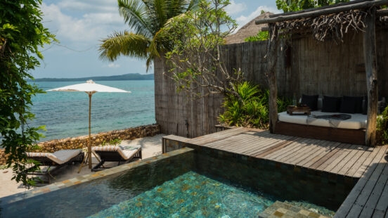 Song Saa is the heavenly jewel in Cambodia’s crown. Suites, built by locals from reclaimed materials, are scattered across lush rainforest, sandy shorelines or perched over the sparkling waters.