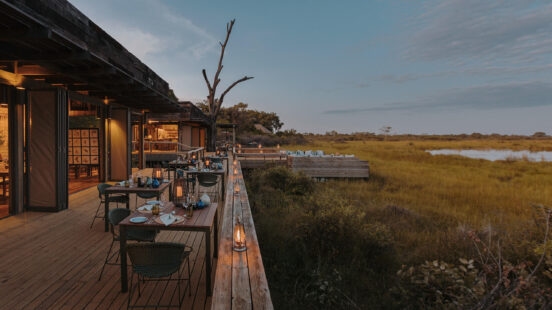 One of Wilderness star camps – immersed in Botswana’s spectacular Okavango Delta. The camp’s design reflects the delta’s rich wildlife, landscapes and local culture and aims to bring the outside, inside.