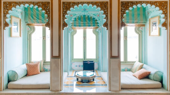 Reminiscent of Maharaja’s palaces and old world India, the enchanting Taj Lake Palace is one of the most iconic hotels in the subcontinent. Set in the middle of Udaipur’s Lake Pichola, this charming hotel enjoys a serene setting like no other. Designed as a recreational palace by a young prince in 1746, the property has since been restored to its former glory, with its fine white marble walls exploding in soft hues of orange at dawn and dusk.
