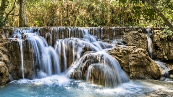 As you head down the Mekong River into neighbouring Laos, you’ll arrive in more remote territory. Stop off in some of the Hmong, Yao and Khmu tribal villages for an authentic experience of local village life. On your way to northern city Luang Prabang, stop off at the enchanting Pak Ou Caves, which are adorned with golden Buddhist statues. Once in the city, travellers can visit the stunning Kuang Si Falls, join monks during their early morning alms giving procession or visit the MandaLao Elephant Sanctuary.