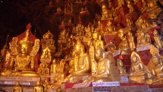 Just outside the peaceful lakeside town of Pindaya in Myanmar, this vast limestone ridge consists of three caves, only one of which can be explored – its entrances signified by a large bronze bell and pagoda.